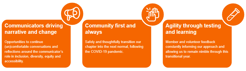 Activated by the voice of our members; informed by the lessons and data from the 2023-24 chapter year; empowered by the #IABC2025 4-year International strategic plan (“Stronger Together”); and driven by the desire to do good by our members, volunteers and sponsors, our 2023-24 Chapter strategy and programming centres around three key pillars: