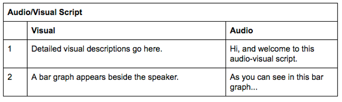 Format the script in rows so that your visuals and audio align. This ensures that the sequencing flows in a clear, intuitive manner.