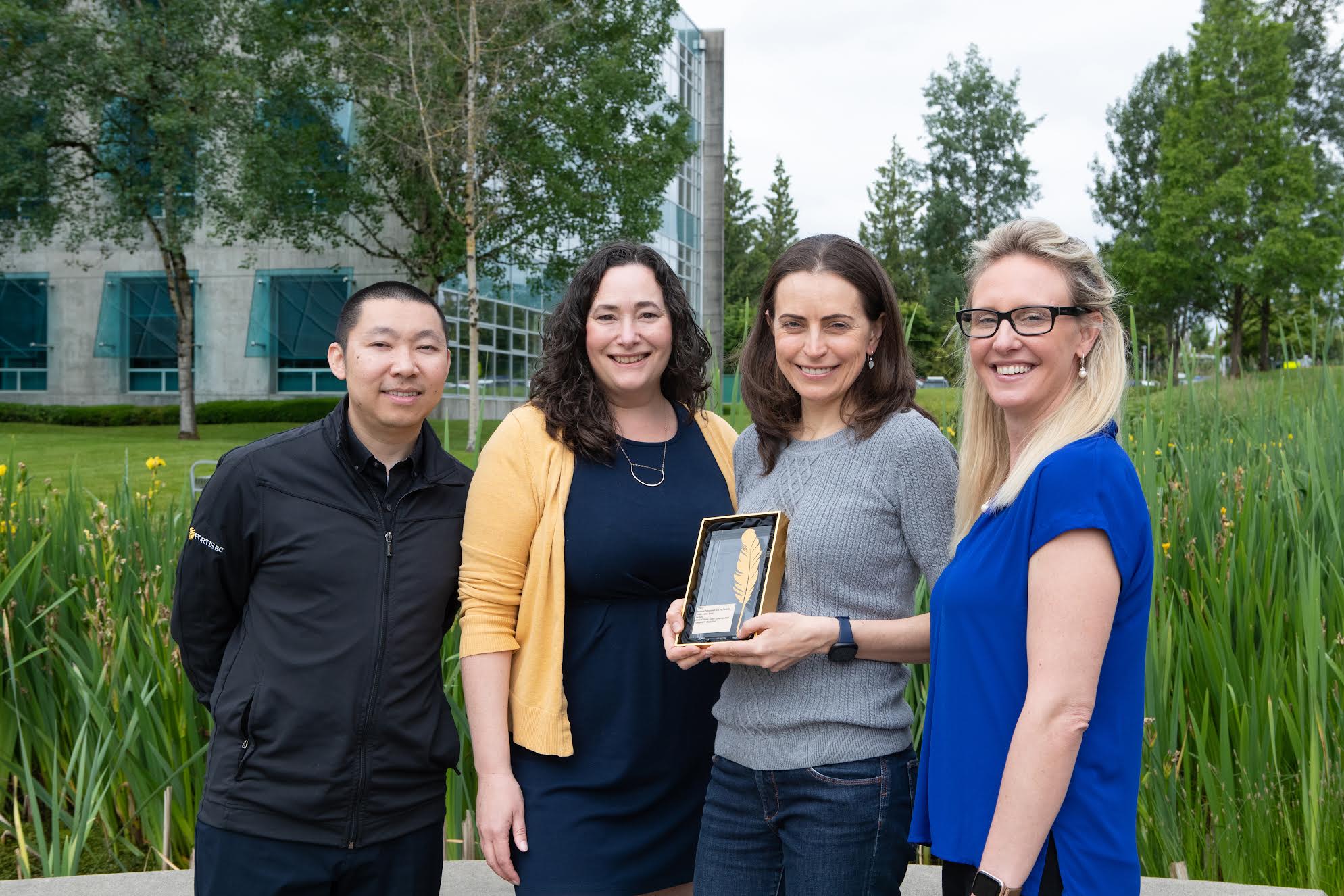 FortisBC team members with their Gold Quill: Michelle Petrusevich, Tammy Lyon, Jimmy Yip, and Tanya Kowalenko